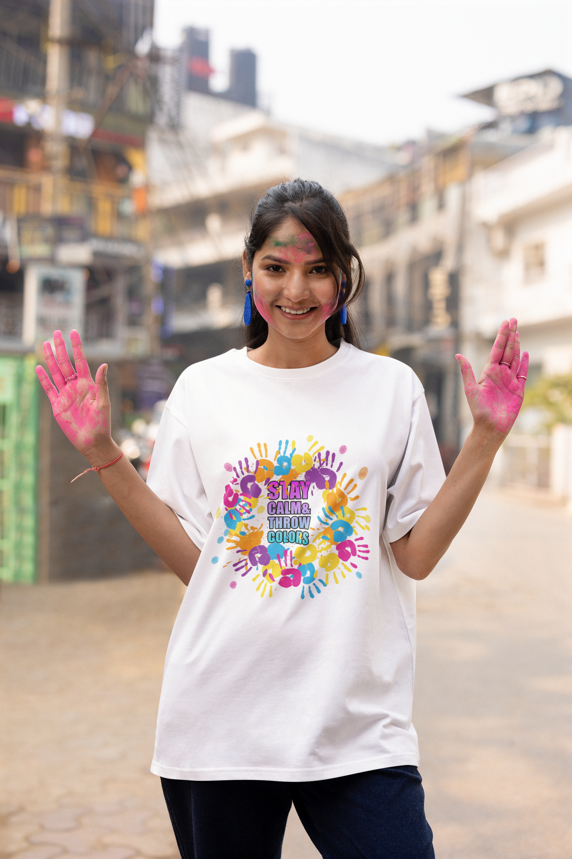 Unisex Holi T-Shirt - Stay Calm Throw Colors